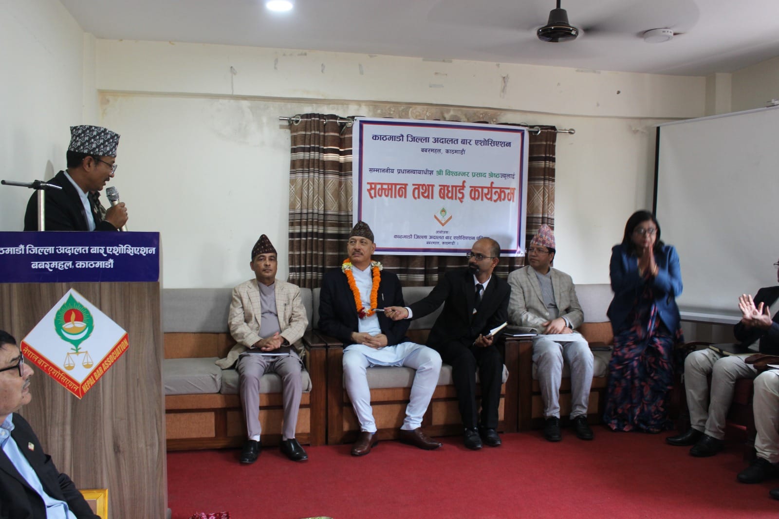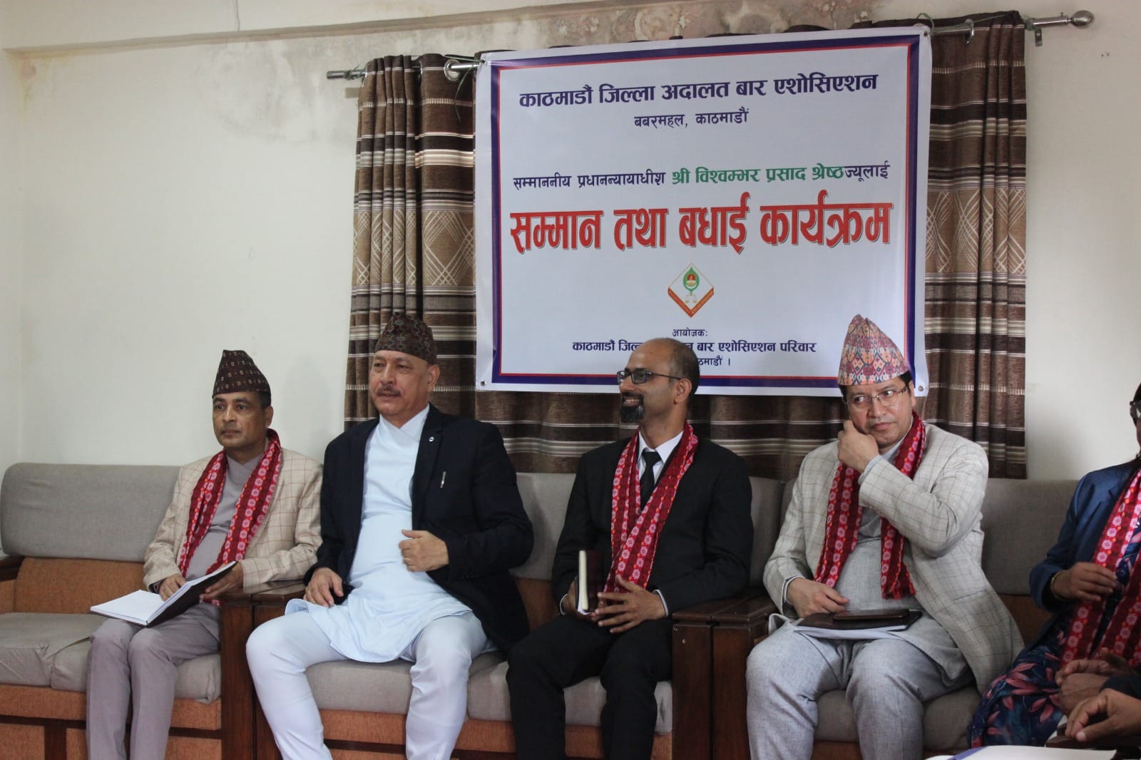 सम्माननीय प्रधानन्यायाधीज्युलाई का.जि.अ. बार एशोसिएसनको तर्फबाट गरिएको सम्मान तथा बधाई कार्यक्रमका केही झलकहरु!! (October 09, 2023)